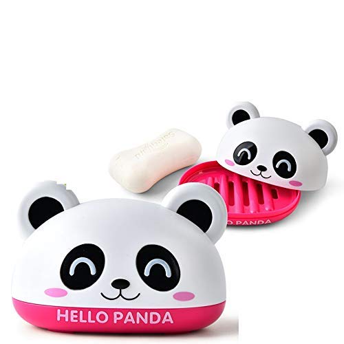Gugzy Cute Panda Soap Box Holder with Cover Bathroom Storage Shelves Racks Floor Type Kitchen Sponge Drain Holder Accessories Supplies (Blue, plastic)